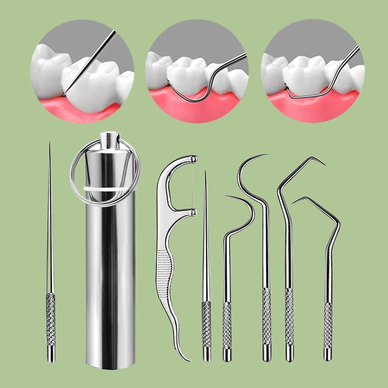 Ich mochte es nie, Zahnseide mitzunehmen, also habe ich diesen Stahl-Zahnstocher ausprobiert. Er ist stabil, leicht zu tragen und mein Mund fühlt sich jedes Mal sauber an.