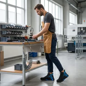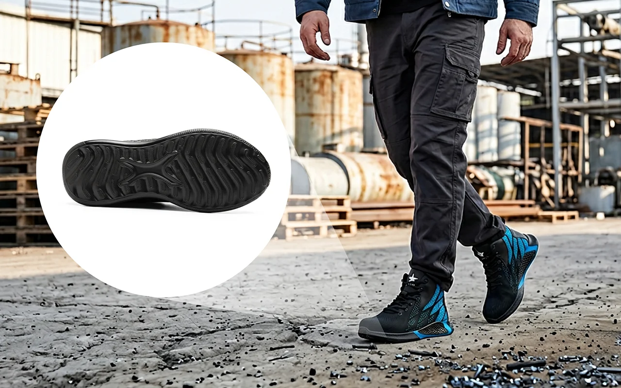 Ortorex-Sneaker verwenden profilierte Sohlen, die auf nassen, öligen Werkstattböden greifen. Sicherer Stand reduziert gefährliche Ausrutscher und hilft Arbeiterinnen und Arbeitern, sich schneller und selbstbewusster zu bewegen.