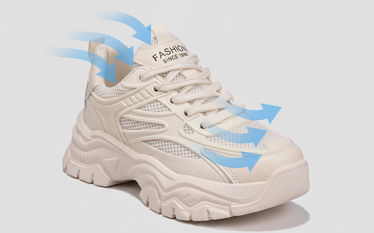 Genießen Sie kühlen Komfort dank luftiger Materialien und cleverem Design. Halten Sie Ihre Füße auch während langer, geschäftiger Stunden glücklich und frisch.