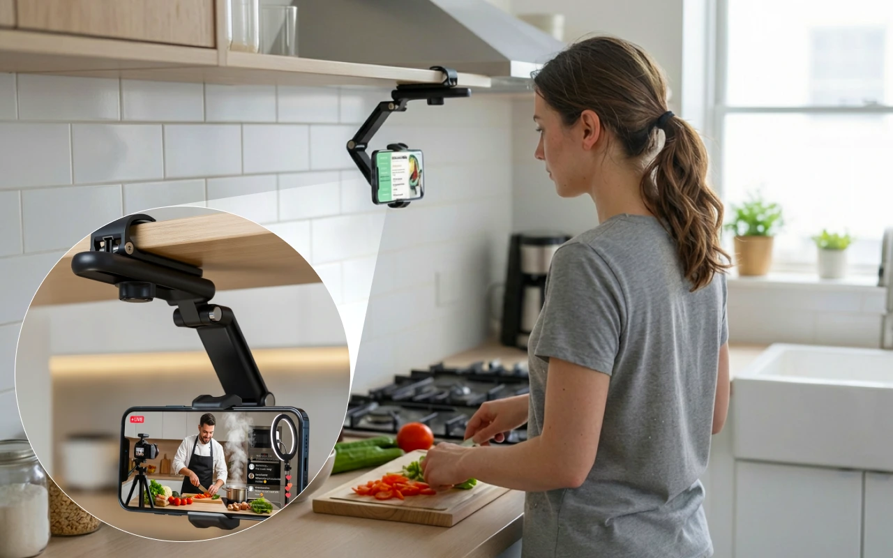 Befestigen Sie die Halterung überall, wo Sie möchten – vom Auto bis zur Küche. Genießen Sie stabilen Halt für Anrufe, zum Ansehen oder Lernen, wo immer Sie ihn brauchen.