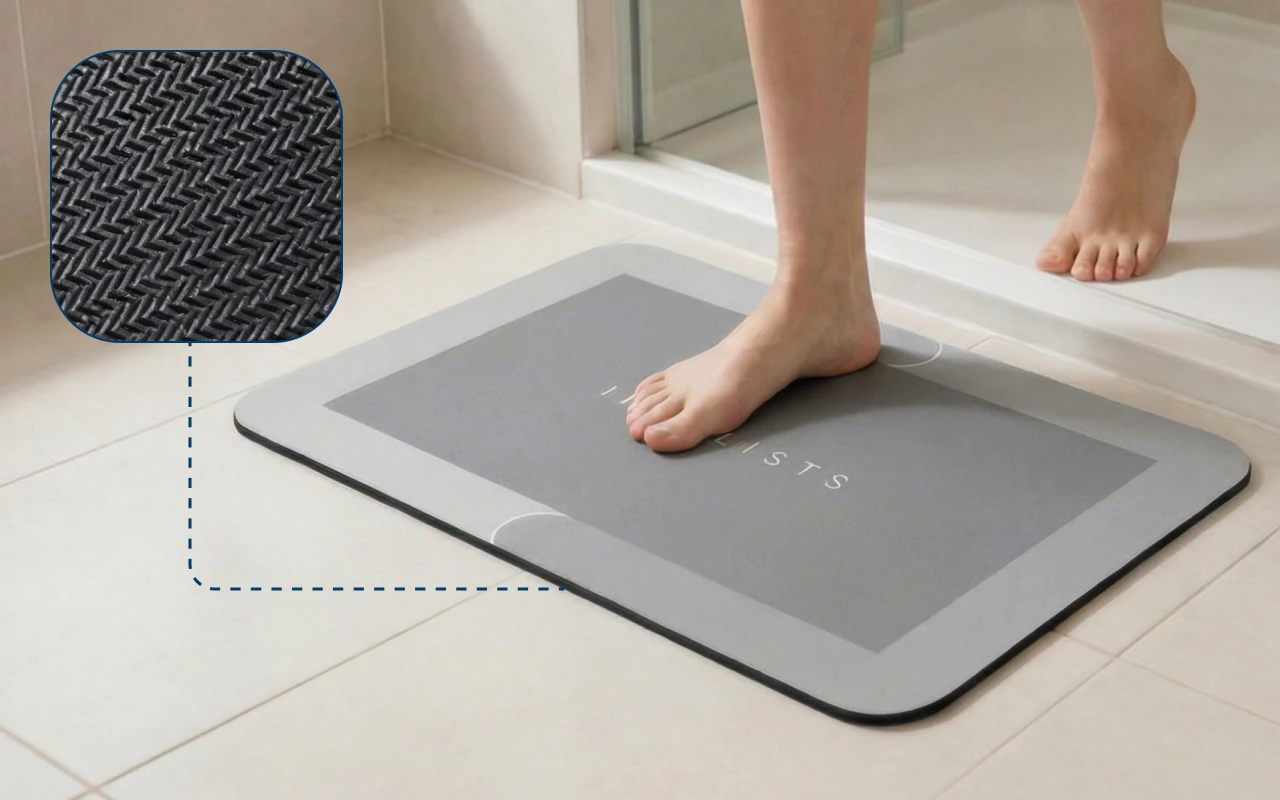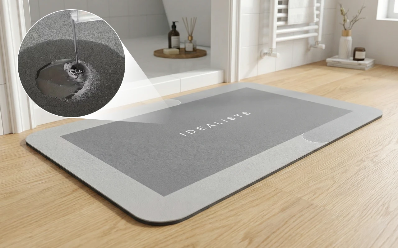 Feuchtigkeit verschwindet fast sofort und hält die Füße angenehm trocken. Keine nassen Flecken oder durchnässte Teppiche mehr nach dem Duschen.
