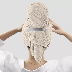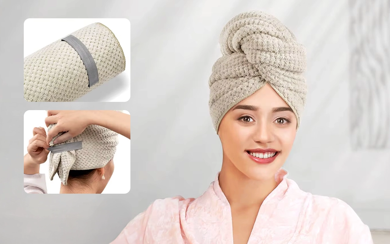 Das Mikrofaser-Material ist fantastisch – sanft zu meinem Kopf und meine Haare trocknen super schnell! Keine nassen Stellen mehr oder schwere Handtücher, die herunterfallen. Ich würde nie mehr zurückwechseln.