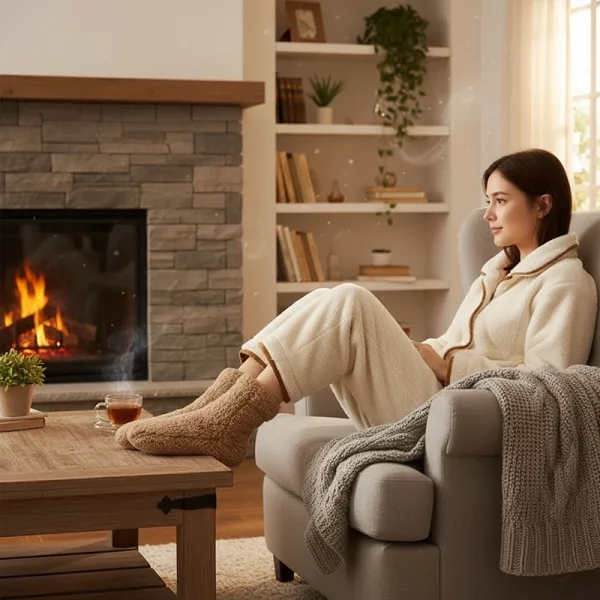 Die sind super für Filmabende zu Hause. Ich rutsche nicht aus, wenn ich Popcorn durch die Küche trage, und meine Füße bleiben warm, bis ich einschlafe.