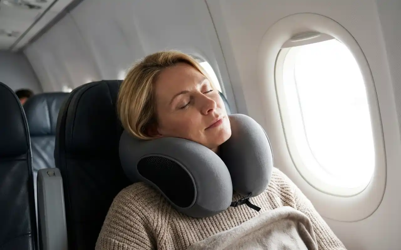 Ich bekomme immer Kopfschmerzen im Flugzeug, aber jetzt nicht mehr! Das Nackenkissen stützt meinen Kopf, sodass ich immer erholt aufwache.