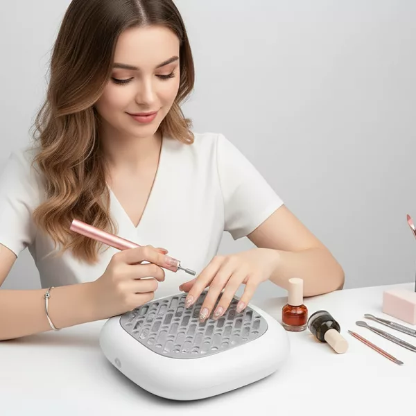Mein Arbeitsplatz bleibt nach jeder Nagelsession ordentlich. Der 360°-Schlauch lässt sich in jede Richtung bewegen, was super für meine vielen Nailart-Arbeiten ist. Ich liebe, wie einfach es ist.