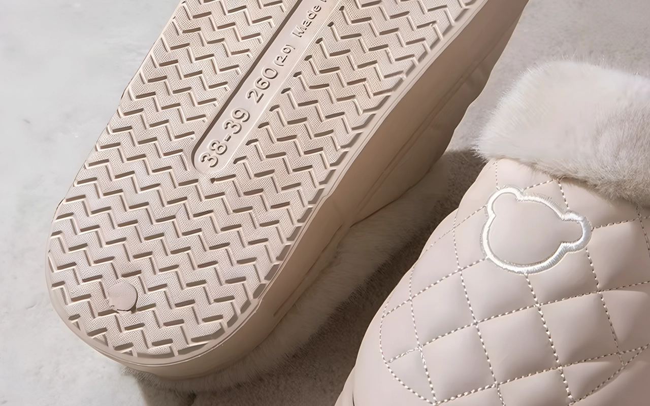Meine Mutter hat mir diese Hausschuhe geschenkt und jetzt trage ich sie ständig. Die dicke Sohle hält meine Füße von den kalten Fliesen fern.