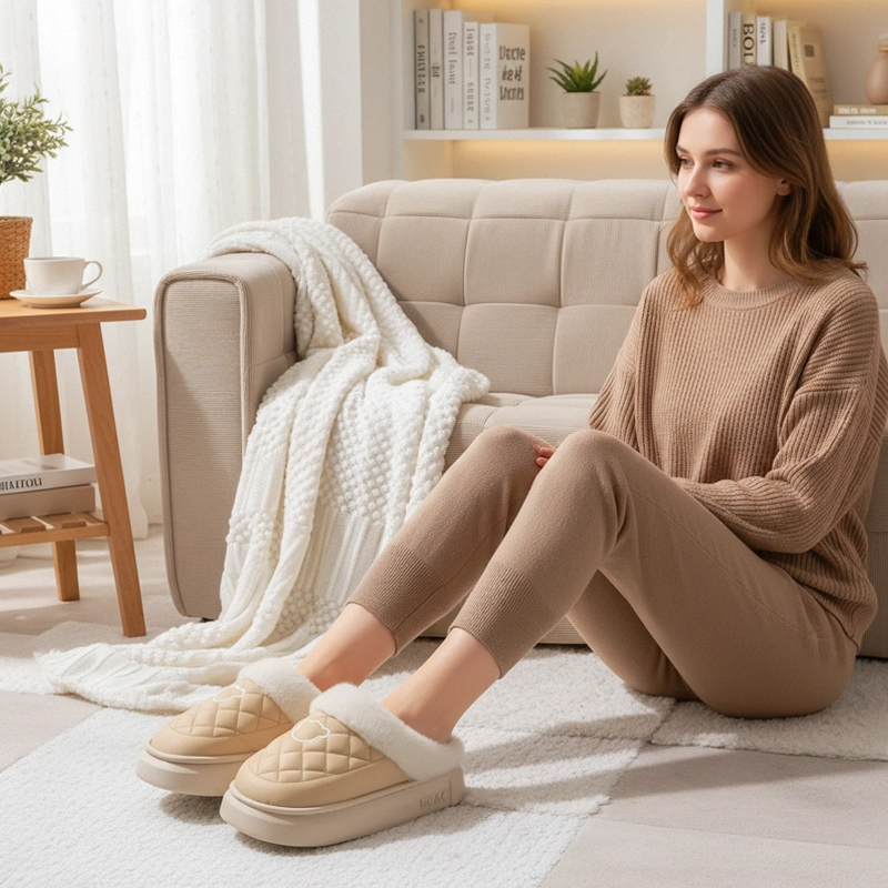 Diese Hausschuhe halten meine Füße den ganzen Tag warm und das weiche, flauschige Futter fühlt sich super gemütlich an. Ich trage sie beim Lesen oder Fernsehen zu Hause.