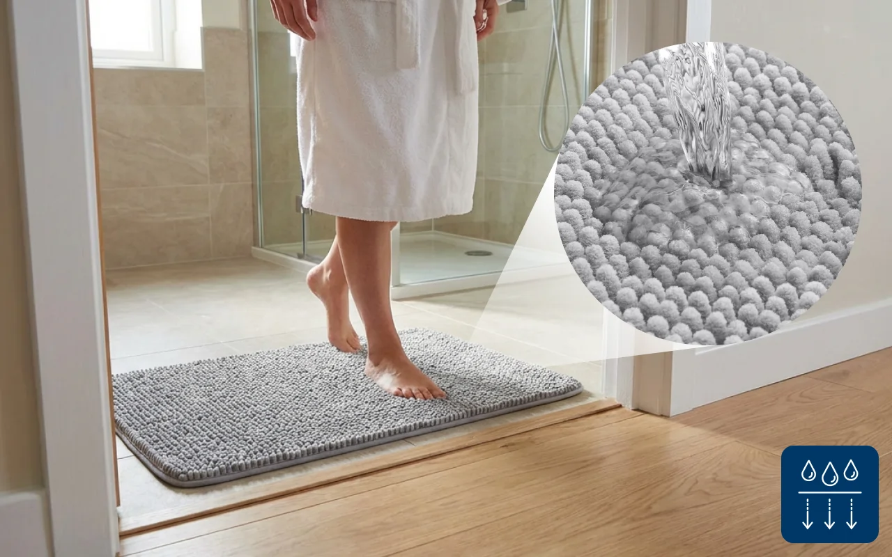 Ich war überrascht, wie schnell dieser Teppich Wasser nach Regentagen aufsaugt. Er trocknet schnell, riecht nie unangenehm und fühlt sich immer weich unter meinen Füßen an.