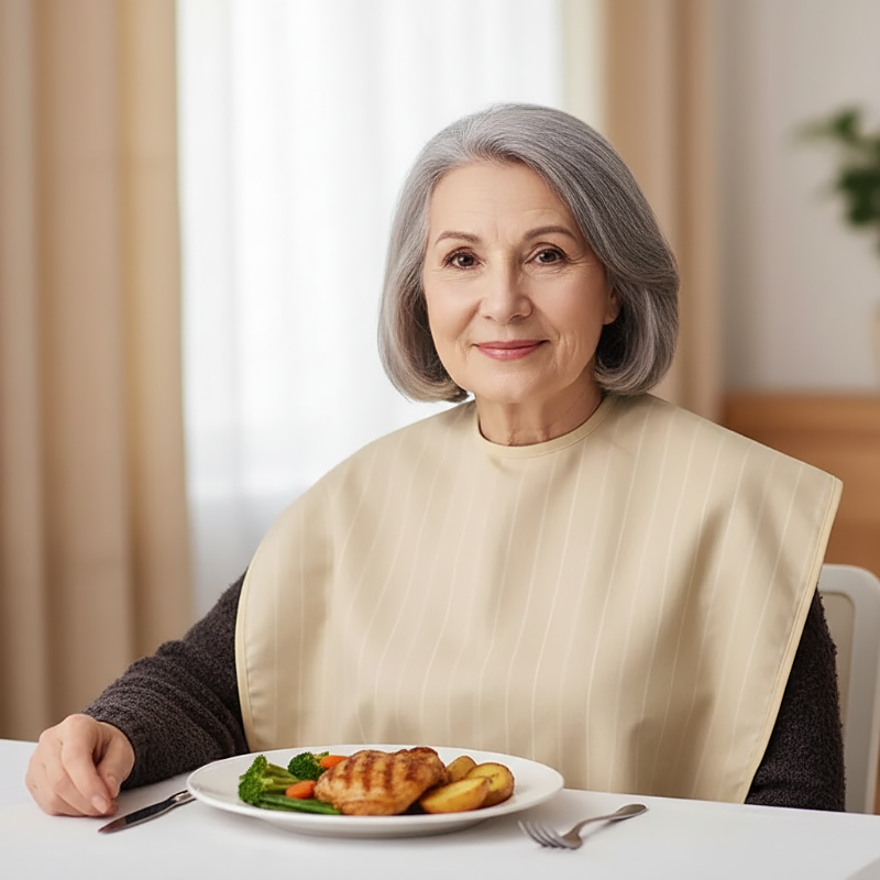 Ich benutze es jeden Tag für meinen Vater und finde es super einfach, ihm das Lätzchen anzulegen. Er beschwert sich nicht, weil es sanft zu seiner Haut ist.
