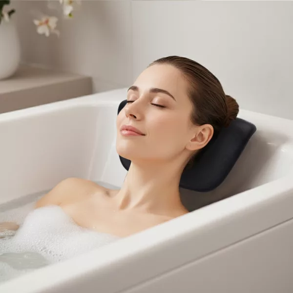 Dieses Badewannenkissen umschließt Ihren Nacken und Kopf mit sanftem Halt. Es sorgt für eine natürliche Haltung, während Sie jeden Moment Ihres Bades genießen.