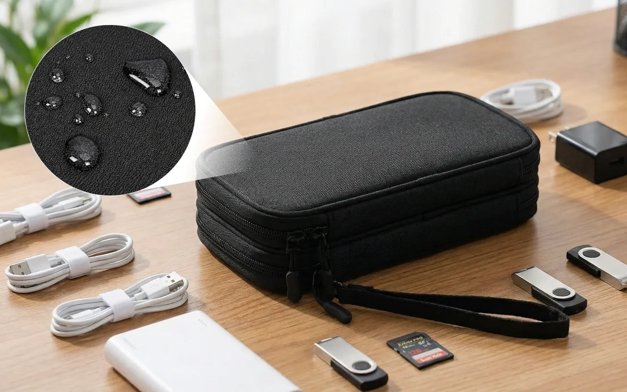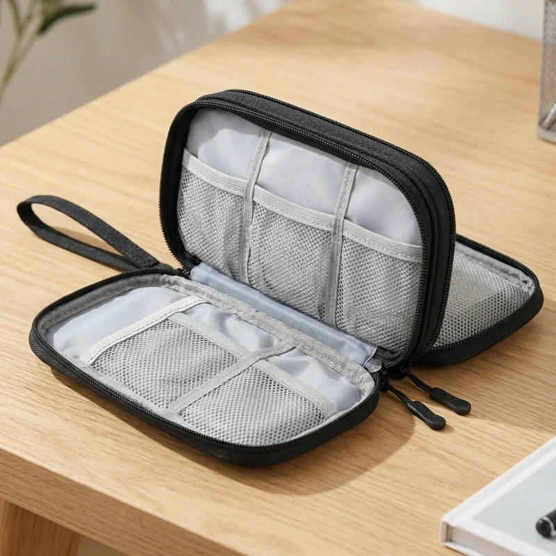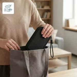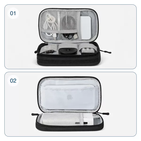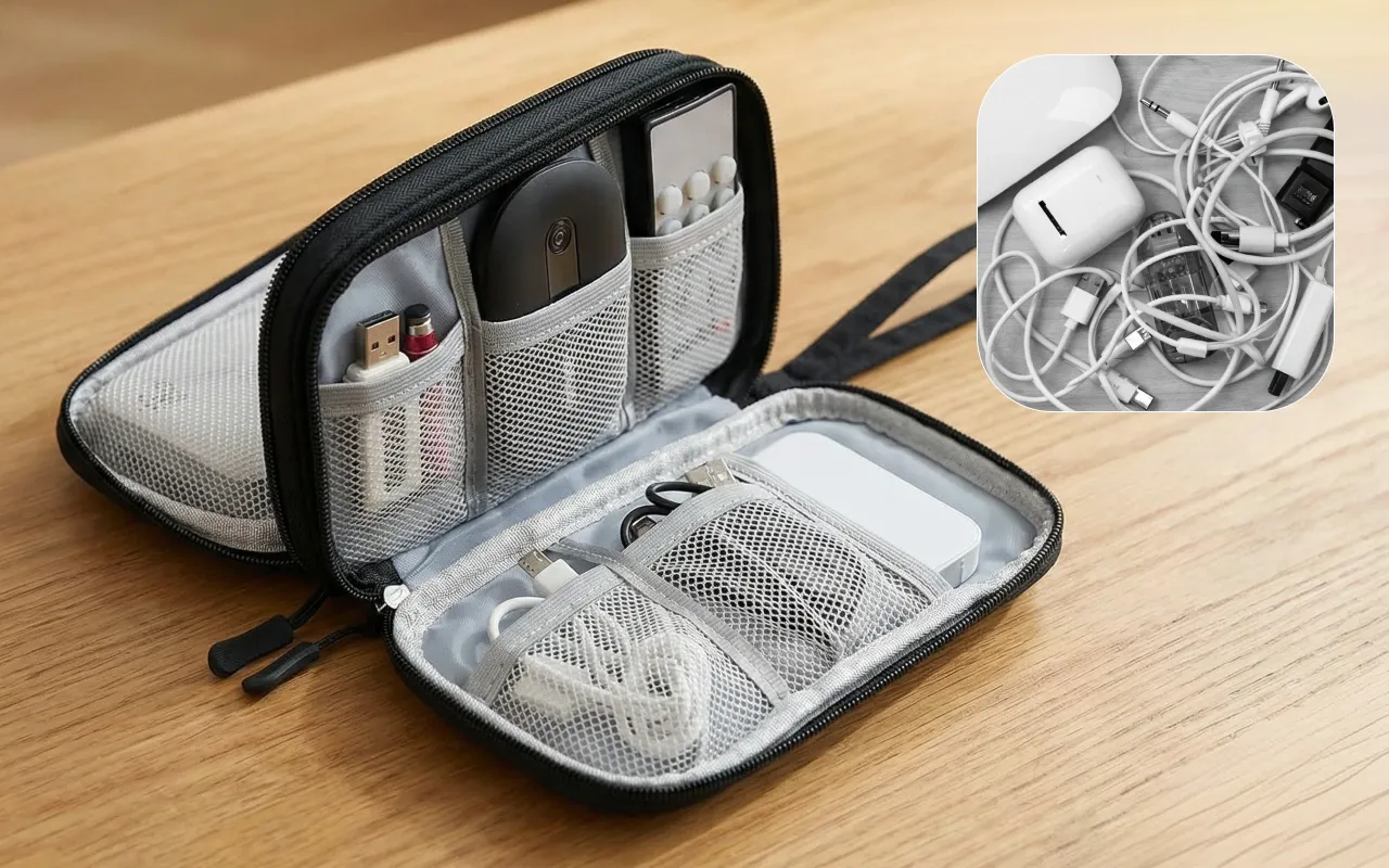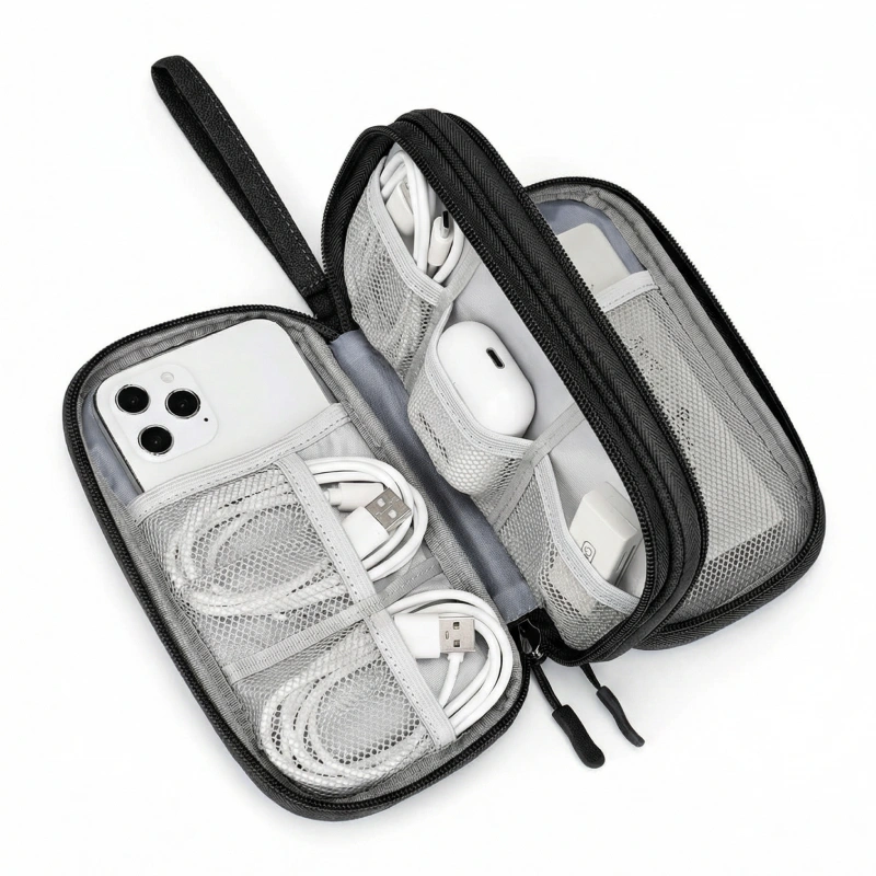 Jetzt ist es viel einfacher, meine Kabel und Ladesteine zu verstauen. Die Tasche lässt sich schnell abwischen und ich mache mir keine Sorgen mehr wegen Verschüttungen.