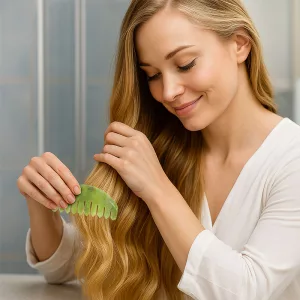 Ich benutze den Jade-Kamm jetzt seit Wochen und meine Haare fühlen sich weicher und viel glatter an. Perfekt zum schnellen Durchkämmen nach dem Aufwachen!
