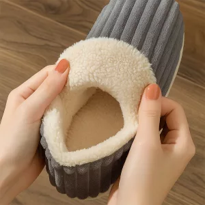Plüschige Hausschuhe umarmen meine Füße wie eine Wolke. Ich kann durchs ganze Haus laufen und habe nie kalte oder unbequeme Füße.