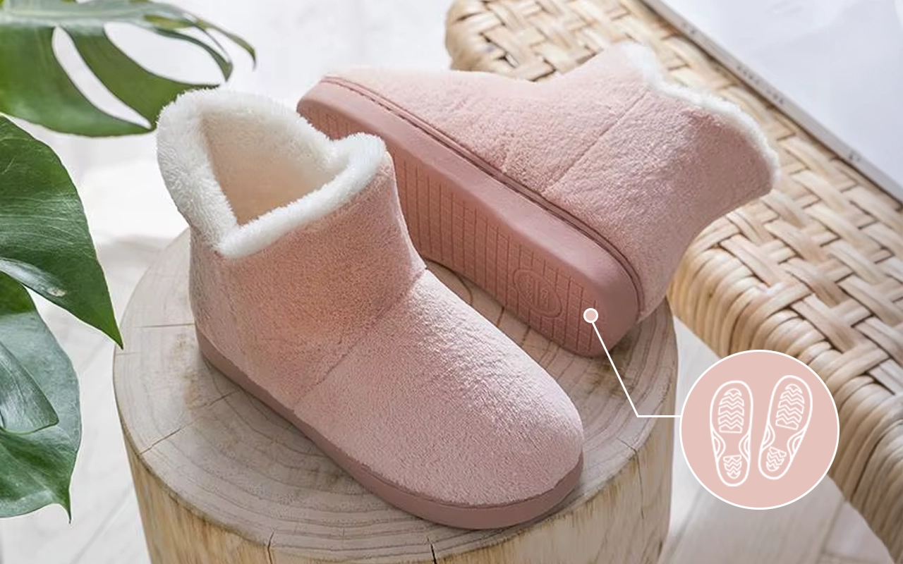 Isolierendes Plüsch hält die Wärme bei jedem Schritt eingeschlossen. Keine kalten Zehen mehr, wenn die Temperaturen im Haus sinken.