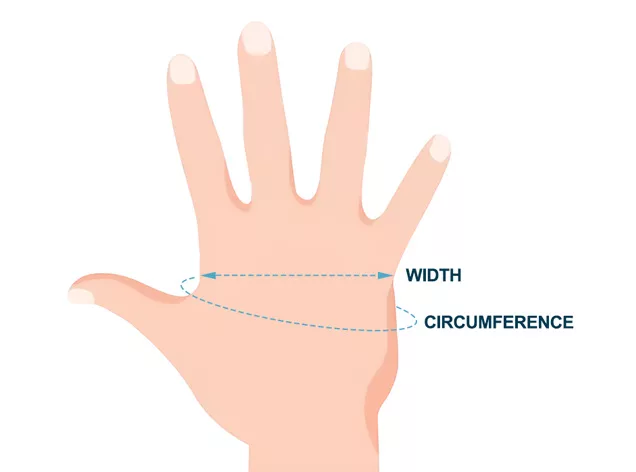 - 1. Legen Sie das Maßband über den breitesten Teil Ihrer Handfläche.