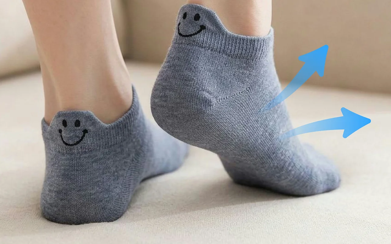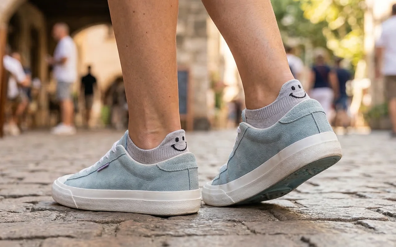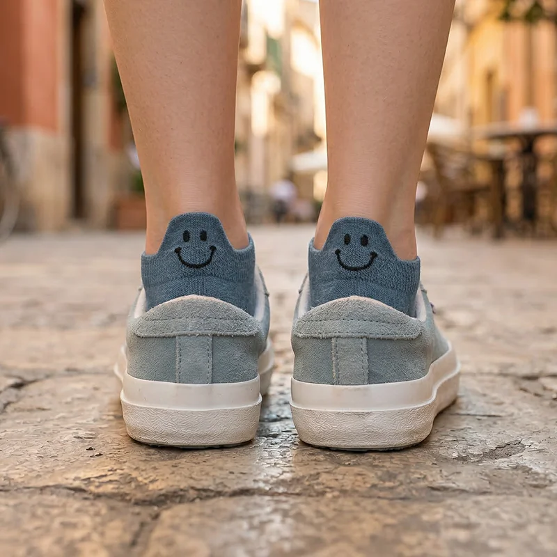 Ich trage sie mit meinen Sneakern im Fitnessstudio und für Erledigungen. Sie rutschen nicht herunter, meine Zehen bleiben frisch und das kleine Lächeln bringt mich selbst zum Grinsen.