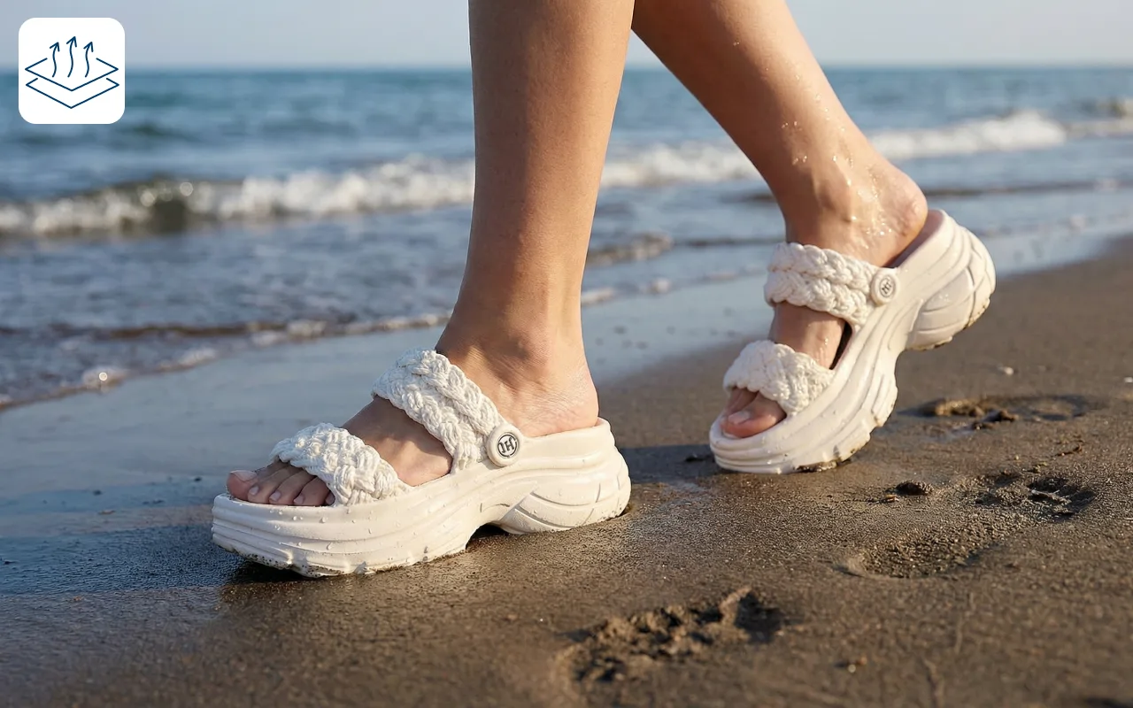 Feuchtigkeit verdunstet schnell, um die Füße überall frisch zu halten. Bleiben Sie komfortabel nach Spaziergängen, Erledigungen oder Zeit am Pool.