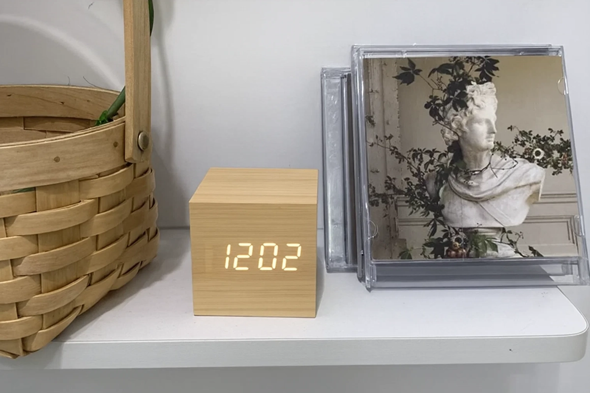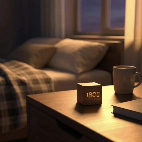 Ich brauche mein Handy nicht mehr für Wecker. Der Holzwürfel ist zuverlässig und hält meinen Bereich ordentlich. Wirklich einfach einzurichten.
