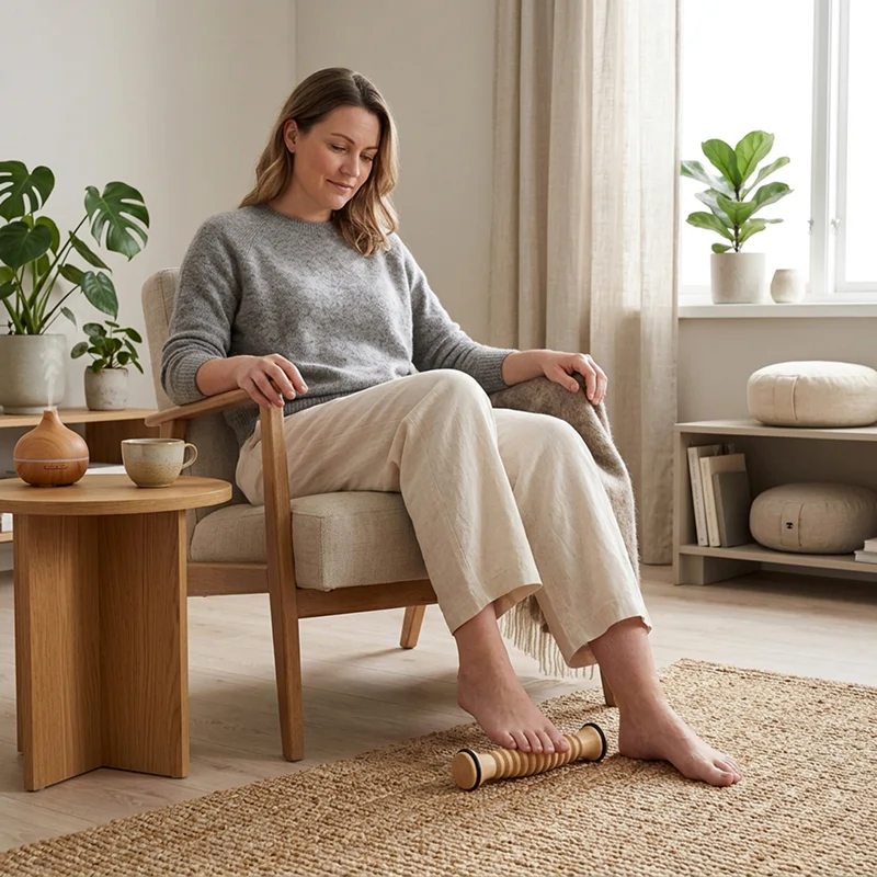 Ich benutze die Rolle, während ich auf dem Sofa lese. Es ist seltsam beruhigend, fast wie eine kleine Massage, und meine Füße bleiben danach warm und locker.