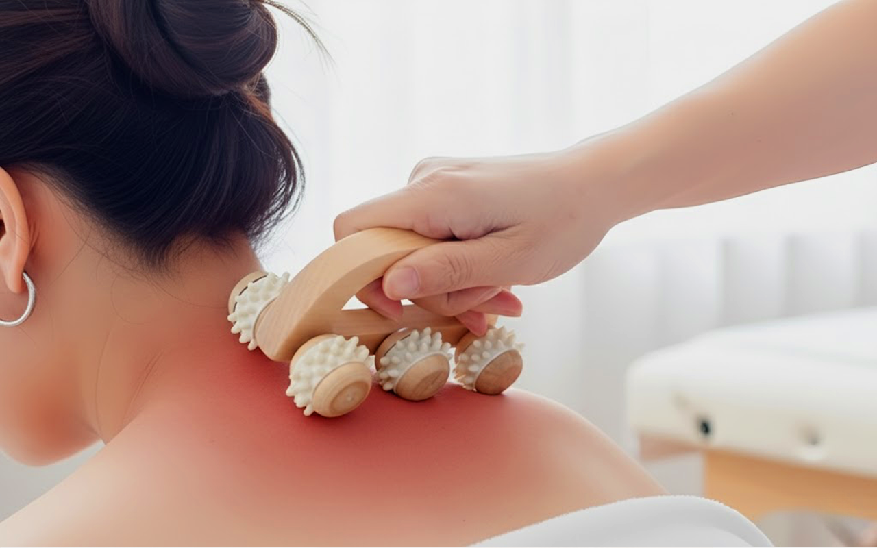 Umweltfreundliche Holzkonstruktion bedeutet, dass keine harten Kunststoffe die Haut berühren. Sanfte Silikonspitzen lassen jede Sitzung entspannend und sicher erscheinen.