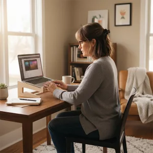 Ich liebe es, wie der Holzständer mein Laptop kühl hält. Mein Arbeitsplatz fühlt sich viel ordent an und mein Nacken tut nicht mehr so weh, weil ich nicht mehr so oft nach unten schaue. Sieht auch toll aus!