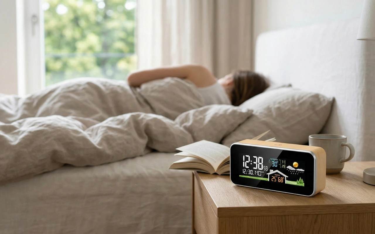 Habe die LED-Uhr auf meinen Nachttisch gestellt. Ich kann die Zeit ohne Brille lesen, und die Dimmstufe hält den Raum gemütlich, während die Temperatur trotzdem angezeigt wird.