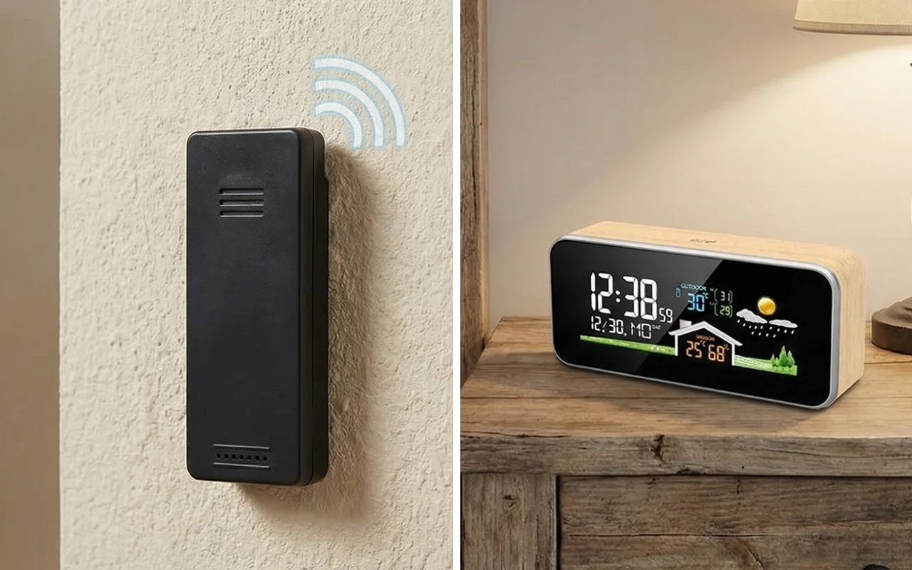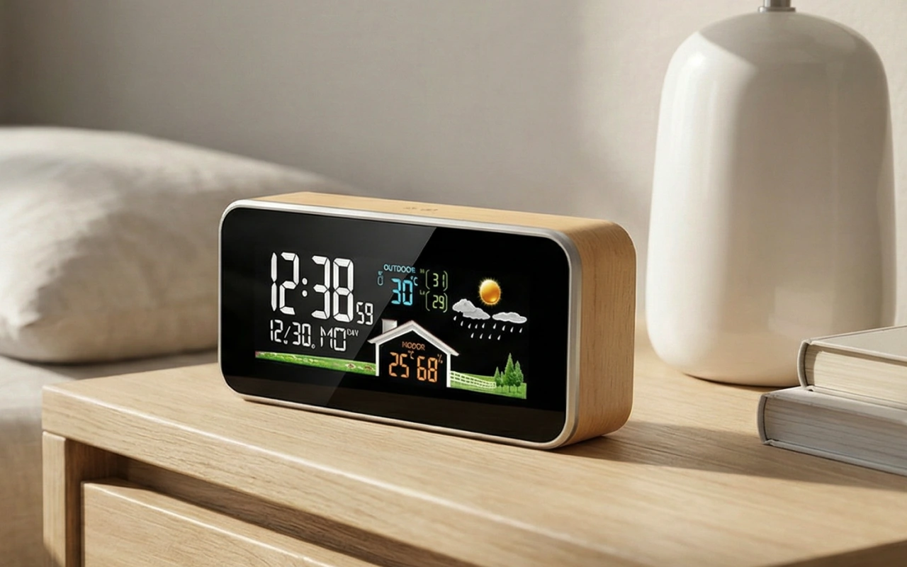 Genießen Sie ein beruhigendes Gefühl, da Sie die genauen Bedingungen in Ihrem Raum kennen. Die Ortorex Wetterstation ermöglicht es Ihnen, Temperatur und Luftfeuchtigkeit auf einen Blick zu erfassen. Das helle Display hilft Ihnen, Uhrzeit oder Vorhersage abzulesen, ohne aufzustehen. Der elegante Holzstil fügt sich perfekt in jeden modernen Wohnraum ein.