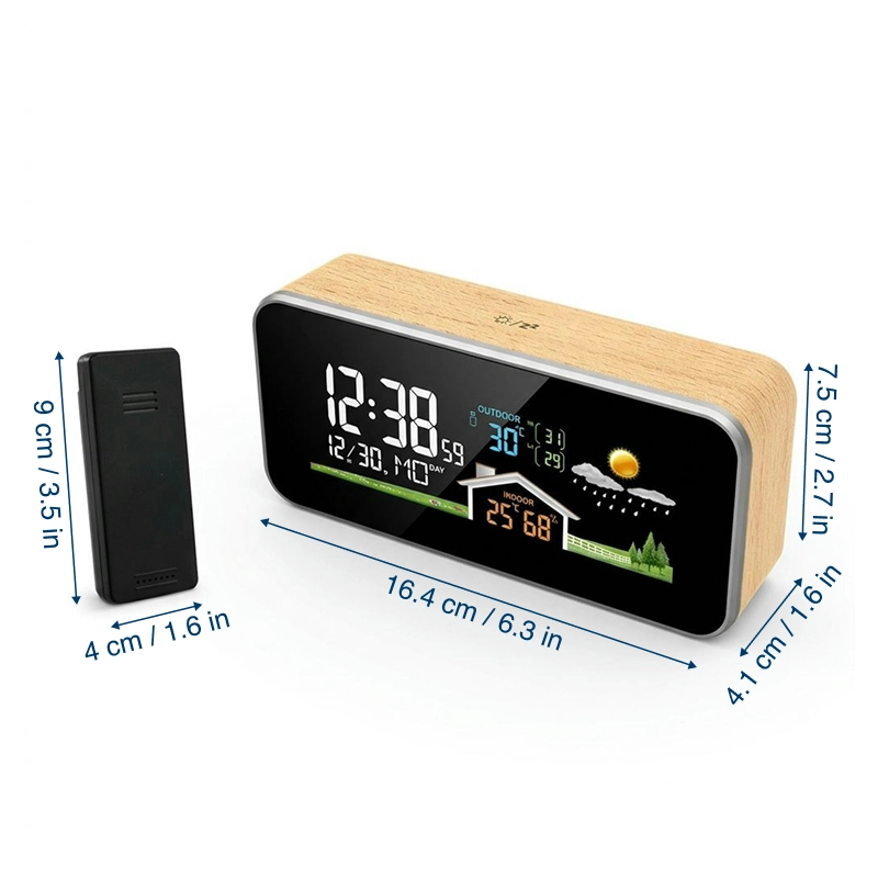 Genießen Sie ein beruhigendes Gefühl, da Sie die genauen Bedingungen in Ihrem Raum kennen. Die Ortorex Wetterstation ermöglicht es Ihnen, Temperatur und Luftfeuchtigkeit auf einen Blick zu erfassen. Das helle Display hilft Ihnen, Uhrzeit oder Vorhersage abzulesen, ohne aufzustehen. Der elegante Holzstil fügt sich perfekt in jeden modernen Wohnraum ein.